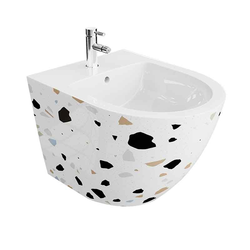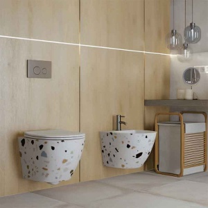 Bideul suspendat Spectrum Trendi Stone completează perfect aspectul băii moderne, printr-un design inspirat de textura terrazzo și linii curate. Modelul decorativ adaugă o notă original, fără a compromite eleganța și funcționalitatea.