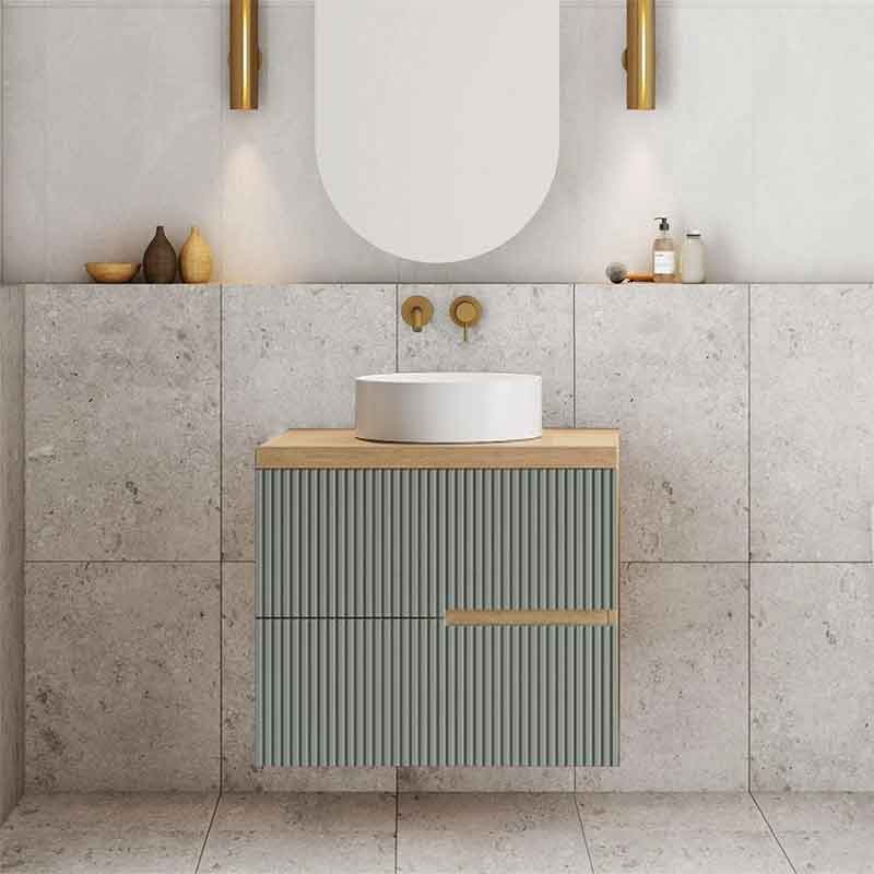 Mobilier pentru lavoar pe blat Fluminia, Malta, finisaj riflat, 80 cm, salvia rovere