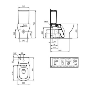 Rezervor WC Ideal Standard Tesi, alimentare inferioară, alb
