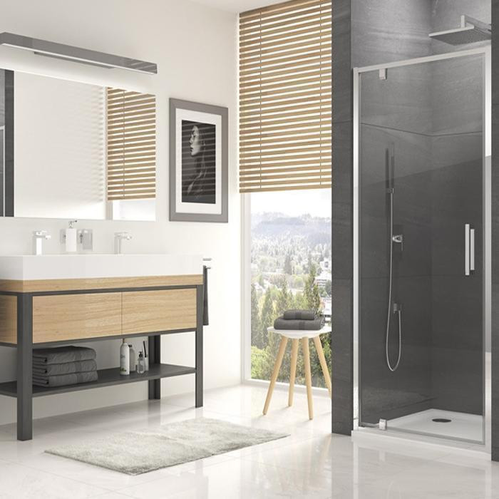 Ușă batantă dintr-o bucată, SanSwiss, Ocelia, sticlă securizată 6 mm, 90 x 190, profil crom